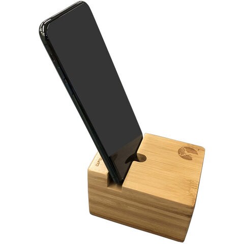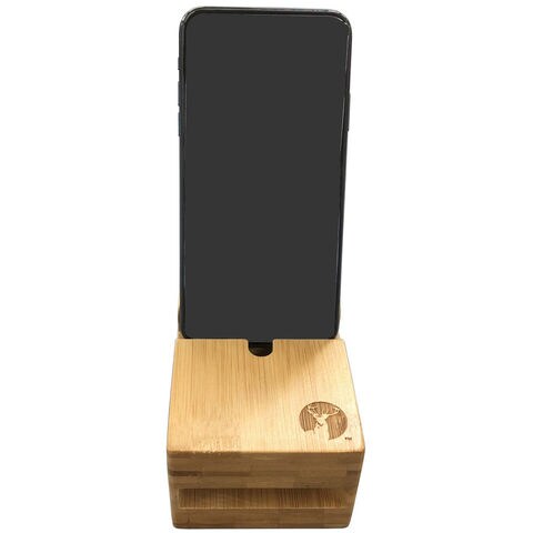 スマートフォンを置くだけで、木の反響とホーン構造で音を増幅できるスピーカースタンドです.