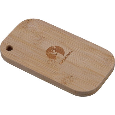 コンパクトな竹製まな板.鍋敷き・盛り皿としても使用できます.キャプテンスタッグ UH-4113 アルミ角型クッカー にジャストフィット.
