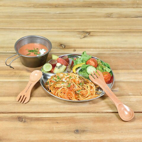 2個セットでキャンプや山登り、ハイキングで携帯便利.自然に優しい、プラスチック製カトラリーの替わりにスプーンとフォークが合体2WAY仕様.キャプテンスタッグ製アルミ角型クッカーにピッタリ入る.