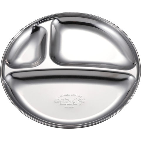 アウトドアでの取り皿にピッタリな、仕切り付きのステンレスプレート.ステンレス製で丈夫なのでアウトドアにピッタリ.仕切りがついているので、味の違う料理も同じ皿に盛り付けられます.