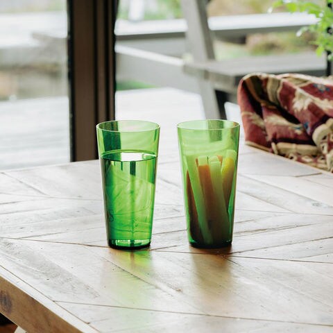 ”CS Forest Cafe”のテーブルウェアは、ガラスのように見えるのに落としても割れない特殊樹脂[トライタン]製.トライタンは耐熱性に優れており、熱湯もOK.食器洗浄機にも対応しています.●タンブラードリンクやカクテルが映える、シンプルで使いやすいタンブラー.高さがあるのでカトラリースタンドとしても使えます. スティック状の野菜やお菓子を入れてパーティーシーンにも. 口当たりのよさにこだわり、飲み口の薄さを約1mmに仕上げました.飲み物本来の味や香りを楽しめます. スタッキングもOKです.