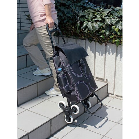 階段などの段差もラクラク上がれます.バッグは室内まで運べ、フレームは折りたためるので、コンパクトに収納できるキャリーです.