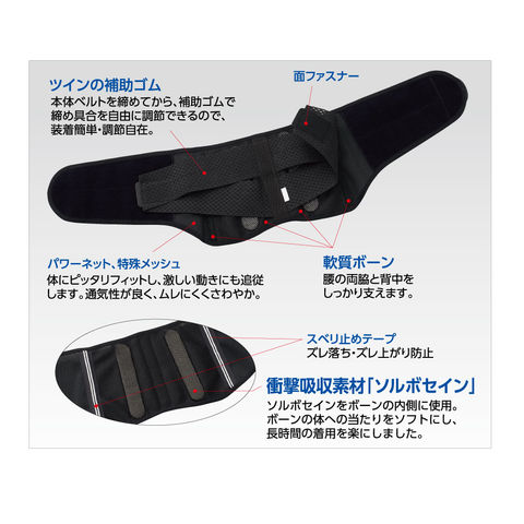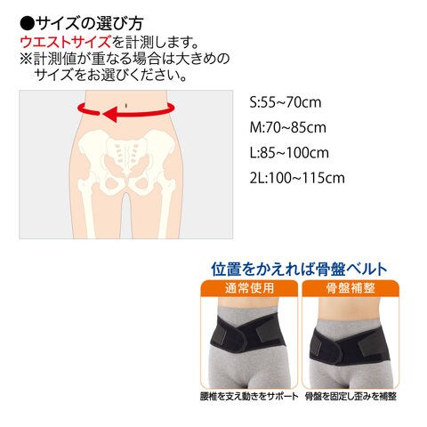 動きやすく、腰のトラブルに、2通りに使えるスリム設計.腹圧をかけて骨盤のズレやゆがみを補整し、腰の安定を保ちながら、負担を軽減し、日常生活の動きをサポートします.動きやすく、腰のトラブルを軽減します.