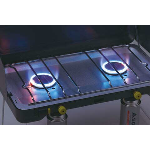リーズナブルなカセットボンベ専用の2バーナー.ファミリーキャンプなどで様々な調理に対応.