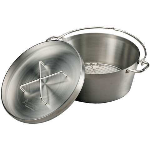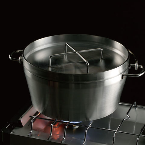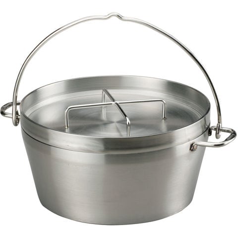 蓄熱性に優れた4ミリ厚のステンレス鋼板.耐衝撃性も抜群!底が平らなため家庭のガスコンロ、オーブン、電磁調理器等でも使用できます.IHクッキングヒーター対応.鉄製のダッチオーブンのようなシーズニングは不要.お手入れも簡単.