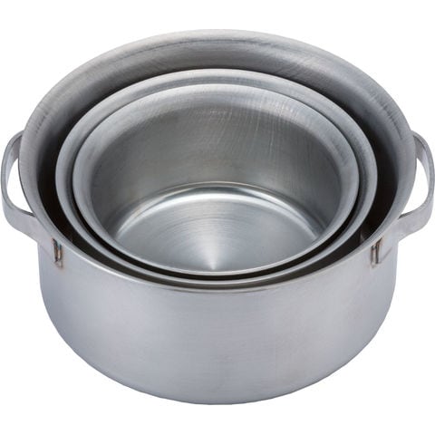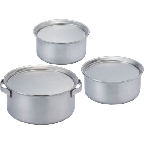 重厚なポット&リッドの3種(大・中・小)セット.3種重ねてステンレスダッチオーブン10インチ(別売)にピッタリ収納.リッドはお皿、鍋敷きにも使えます.3つのポットをスタッキングして収納.リフターはリッドのつまみとポットのつかみの二役.シンプルな形状のリッド、ポットは洗浄もラクラク.IH電磁調理器対応です.肉厚な鍋は、保温性に優れ、熱効率を高め、鍋底の歪みや加熱ムラによる焦げ付きを軽減します.機能性と堅牢性のみならず、スタッキングにより優れた収納性も兼ね備えました.アウトドアだけでなくご家庭でも併用でき、末永くお使いいただけます.収納袋付き.
