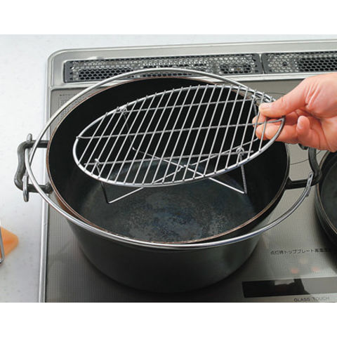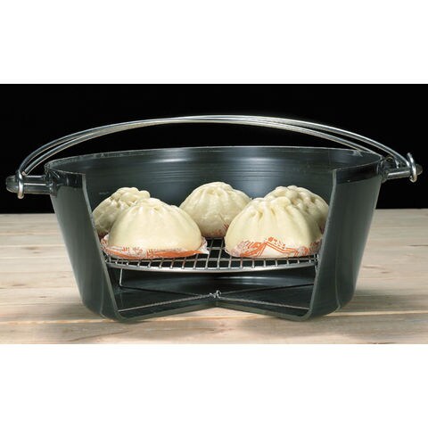 セットするだけでスチーム料理やスモーク料理が楽しめます.又、ピザなどの下火調節が難しい料理にも役立ちます.スタンドは折り畳み式ですので、収納場所を取らない設計.