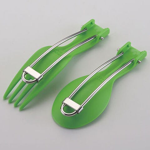 2 役をこなす軽量チタニウム製フォールディング[先割れスプーン]携帯に便利な収納ケース付き.ケースには吊り下げフック付きです.