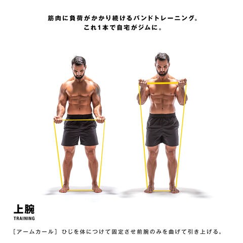 自宅で簡単エクササイズ.体幹トレーニング・筋力アップに最適.家でジムに行ったように負荷をかけられる.長さがあり様々なトレーニングに使える優れもの.太く丈夫なゴムで切れにくく、長く使える.長く、幅の広いゴムで使いやすい.家族で楽しくエクササイズ.