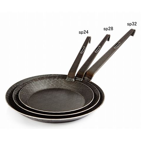 錬鉄を丁寧に鍛造したクラッシックデザインのフライパンです.全体に施された溝が油や肉汁などを通しやすくして料理を焦げ付きにくくします.