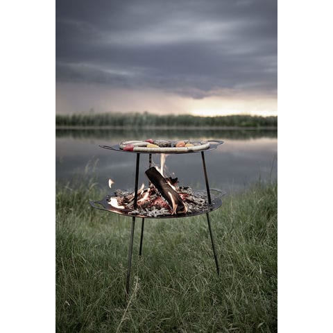 食材を焼くための鉄板として、または焚き火をする際の焚き火台としてなど、1台で2種類の使い方ができるファイヤーボウル.3本の脚は取り外しが可能なので、持ち運びも容易です.