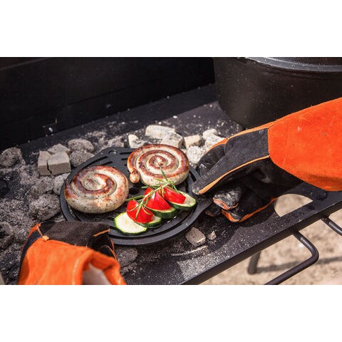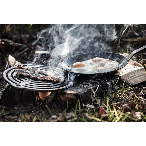 鋳鉄製のトライベットに3本の脚がつき、蓄熱性と保温性を備えた焼き網としてお使い頂けます.もちろんペトロマックスダッチオーブンに入れ食材の焦げ付き防止にも最適.