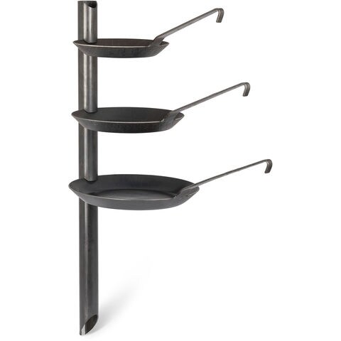 シュミーデアイゼンフライパン専用のブラケット.地面に刺してシュミーデアイゼンフライパンを装着すれば、直火の鉄板焼きが楽しめます. 3 段階の高さ調整が可能.