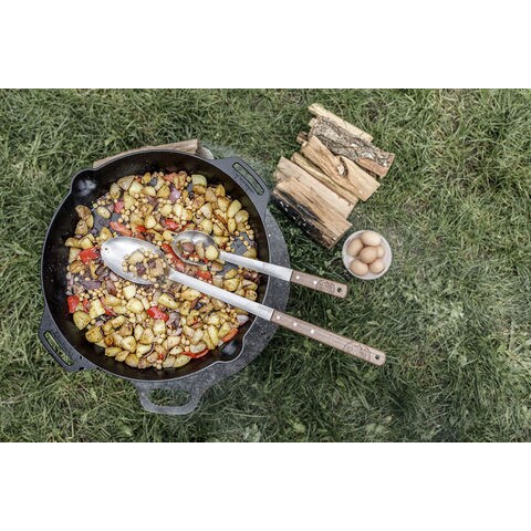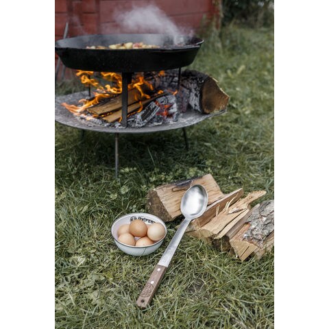料理の盛り付けに最適な、ステンレス製で持ち手がウォールナット材のスプーン.