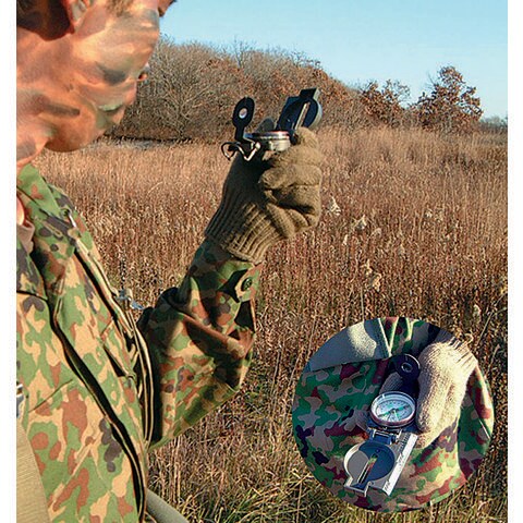 軍用ミルスペックの陸自使用品.アルミダイカスト製.振れのないオイル制動式で方位角は軍用ミル目盛と度数目盛の2種類を配しています.