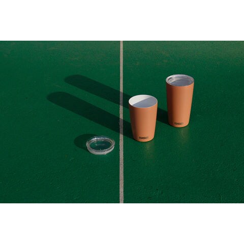 18/8ステンレススチール製で、内壁と外壁にセラミックコーティングが施されて飲み口が滑らかとなっており、飲み物本来の味を一層引き立ててくれ、まるで陶器のカップのような飲み心地の良さを実感できます.また、真空断熱および銅コーティングの二重壁構造で、熱い飲み物を入れても容器が熱くならず、火傷の心配がありません.断熱効果によりカップの外壁に水分が結露することもありません.カップはトライタン製の蓋つきなので、特に歩行中にこぼれる危険性を最小限に抑えることができます.
