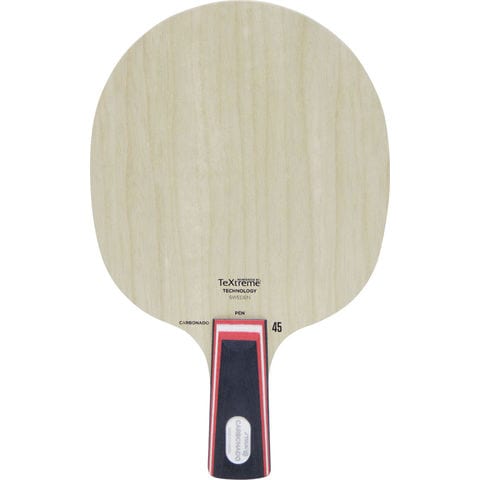 特殊な技術により軽量で細い糸状のカーボン繊維を生み出し、丁寧に編み込むことによって軽量かつ硬いカーボン素材を作り出しました.この素材は卓球業界ではかつて使われたことがなく、スティガだけがライセンスを取得し使用可能です.カーボン素材を45度の角度で編み込んだカーボンを搭載.カーボネード145より弾みが抑えられ、コントロールに優れています.弾道は弧線を描きます.
