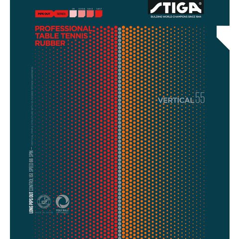 硬めのスポンジと縦目の粒を合わせたことにより、変化+安定+抑えを持ち合わせたラバー.さらに弾きやすく攻撃時の威力も兼ね備えた、バーティカル55は粒高の良さを最大限に引き出す可能性を秘めた魅力あるラバー.相手コートに突き刺さるカット、揺れるプッシュ、攻撃時の威力、ツッツキの安定性を是非ご体感あれ.