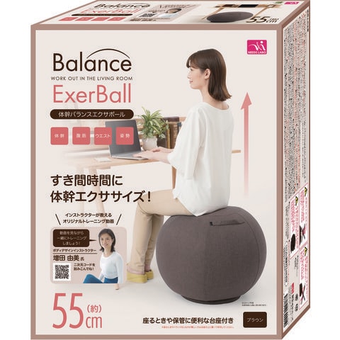 おうちで簡単!乗るだけ楽しくエクササイズ!ストレッチやヨガボールだけじゃない!いつもの椅子をエクサボールに変えるだけでも、簡単に体幹トレーニングに!インテリア・生活に馴染むファブリック素材で、おうちにぴったり!持ち運びに便利な持ち手付きでお部屋移動もらくらくです.バランスに自信のない方や、保管に便利な台座付き.カバーは取り外して洗えりので、清潔に保てます.