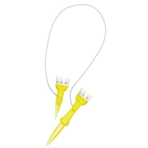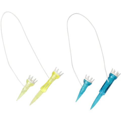 振り抜きの良さとティーアップの安定性を兼ね備えた段付きツインティー.ボールを点で支えるリフトアップ&やわらかヘッドがポイント.インパクト時の抵抗が少ない仕様で振り抜きやすい.段付きなのでいつでも一定の高さのティーアップが可能.ティーが飛びにくいひも付.
