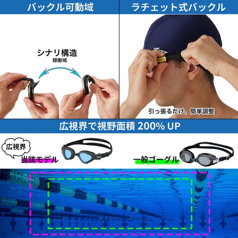 仕様:こするだけでくもり止め効果が復活するSWIPE搭載、競技直前でもベストなフィッティングを実現できる[ラチェット式バックル]搭載、アウトドア使用にぴったりのUVカットレンズ、フェイスラインによって選べる3サイズの鼻ベルト付、Fina認証モデル