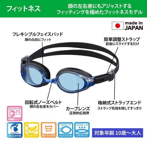 ビュー VIEW SWIPE フィットネス スイミングゴーグル メンズ レディース フレキシブルフェイスパッド 水中めがね くもり止め トレーニング ストラップ調整 UVカット V640SA