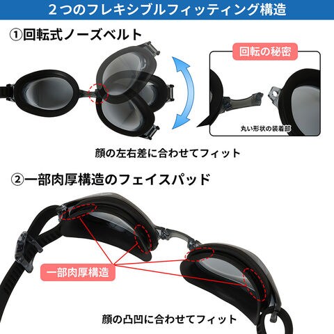 顔の凸凹に合わせてフィットするフレキシブルフェイスパッドと顔の左右差に合わせてくれる回転式ノーズベルトで[着けている]を忘れる至福の装着感を実現.さらに広視界カーブレンズで視野範囲を12UP(※当社V630比)ストラップ調整もスライドするだけと着け心地、使い心地にこだわったフィットネス用スイミングゴーグル.こするだけでくもり止め効果が復活するスワイプアンチフォグも搭載.