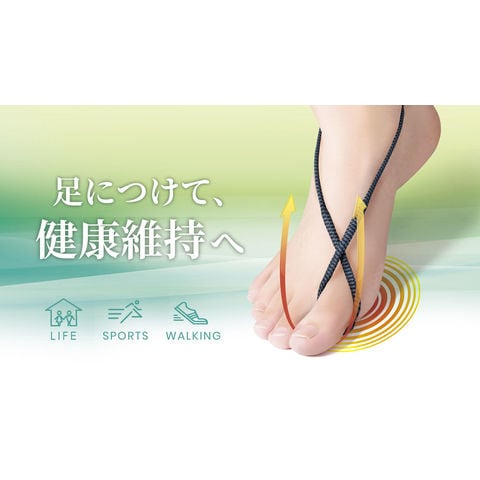 特徴:【母指球を意識】・母指球で地面をしっかりととらえやすくなります.【足裏にアーチをつくる】・ひもの伸縮性能と親指に上向きの力が加わることで、綺麗なアーチを形成します.【足が上がりやすくなる】・伸縮性ひもにより上方向に引く力が親指にかかり、足をあげる動作をサポート.