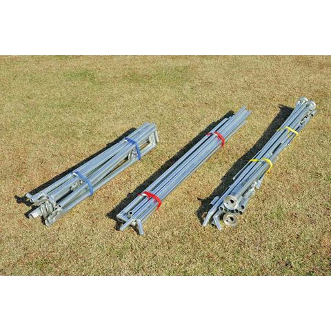 集会テントをしっかり固定.3色の色分けで整理もすっきり.