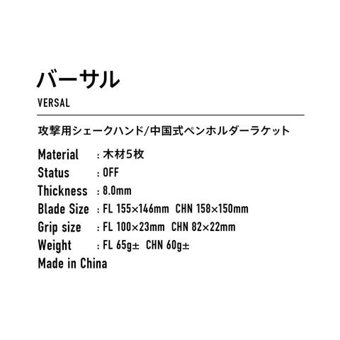 ヴィクタス VICTAS バーサル フレア VERSAL FL ラケット シェーク 攻撃用 310084