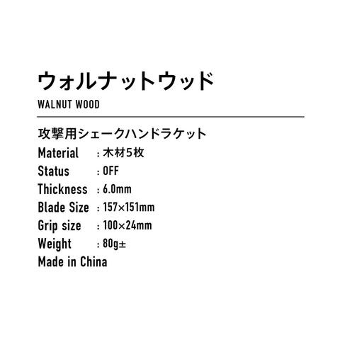 仕様:攻撃用シェークハンドラケット、打球感/HARD、反発力/7.0、振動/6.0