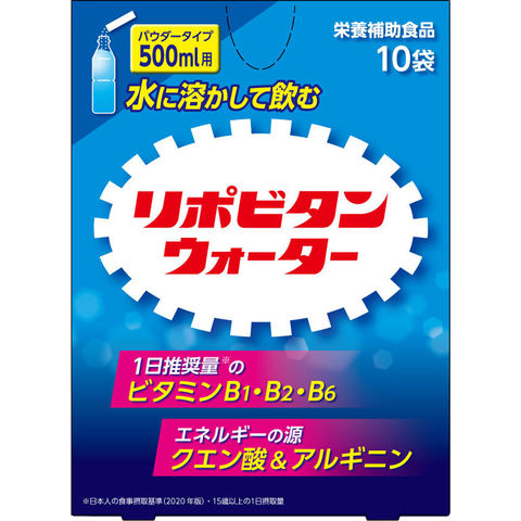 栄養補助食品.いつでもどこでも、サッと水に溶かして飲めるリポビタン(1日1~3回を目安に、1回1袋(5.4g)を500ml程度の水に溶かして服用).1日推奨量のビタミンB1、B2、B6配合.エネルギー源のクエン酸&アルギニン配合.カフェイン不使用.エナジー風味.※こちらの商品は返品、交換はお受けいたしかねますのでご了承ください.