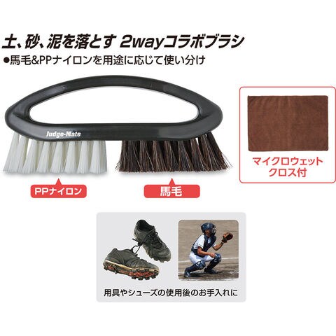 用具やシューズの使用後のお手入れに使用.土、砂、泥を落とす.馬毛&ナイロンを用途に応じて使い分け.