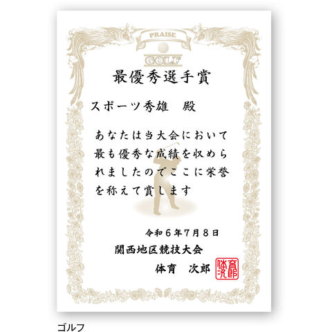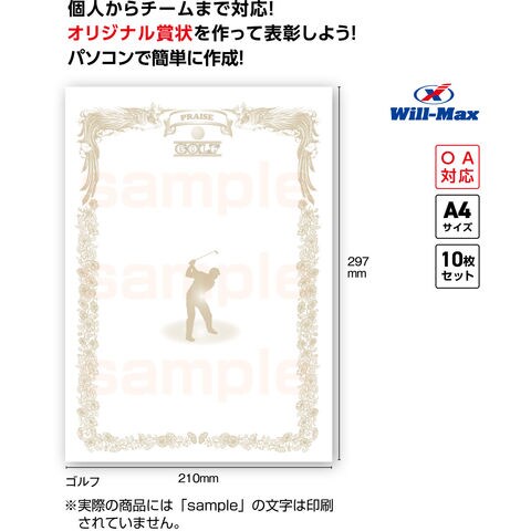 ユニックス UNIX 種目別賞状用紙 ゴルフ 賞状 A4 賞状用紙10枚 テストプリント用紙 参考文例 簡単作成 試合 ゲーム 用品 表彰用品 表彰状 最優秀選手賞 文字カラー FD1392