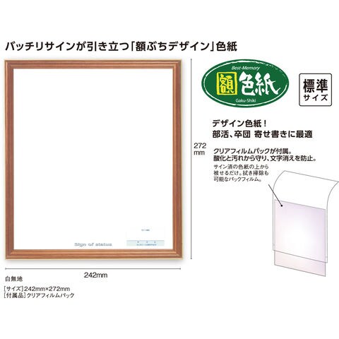 バッチリサインが引き立つ[額ぶちデザイン]色紙です.酸化による変色や汚れの防止に拭き掃除も可能なクリアフィルム付き.