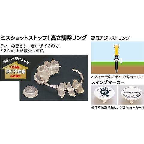 ミスショットストップ.高さ調整リング.ティーの高さを一定に保てるので、ミスショットが減少します.飛び不動尊でお祓いを受けたマーカー付.