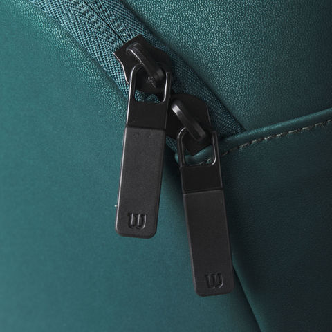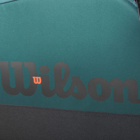 BLADEV9のエメラルドグリーンをモチーフにしたデザイン.メインポケットは3室に分かれており、ラケットは最大15本、その他にアパレルやシューズ等も収納可能.メインの2室に施された黒のサーモガードは内部の温度上昇を防ぐテクノロジーを搭載.両サイドの大型ポケットにはサングラスや、携帯電話、鍵等の小物も収納が可能.メインポケットの中央部分の底面にはベンチレーション仕様のジッパー付ポケットがあり、シューズの収納に最適.軽量かつ高強度・高耐久性の素材を使用.肩掛けする際にも負担にならないようにパッド付き.