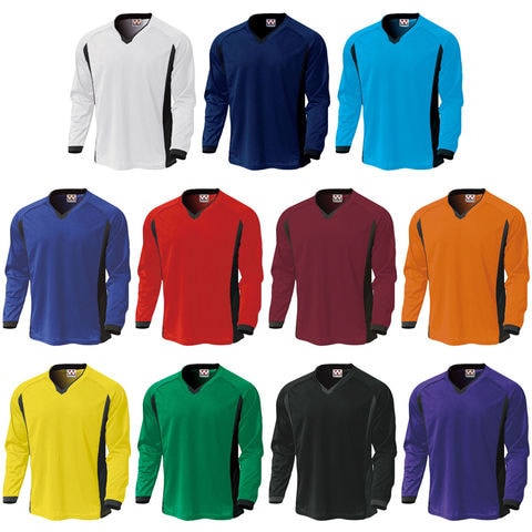 ラグラン袖、切替デザインBODY、2重衿、後身頃の裾をアール型にカットした長袖スポーツTシャツ.吸汗速乾ポリ100、表面がツルっとしていてプリントしやすい素材です.伸縮性のあるウーリー糸を使用しており、引っ張りにも強くなっています.切替デザインスポーツTシャツで11色展開、ジュニアから大人までの10サイズ展開が最大の特徴.野球、ハンドボール、バレーボールなど、サッカーに限らずあらゆるスポーツにご利用いただいています.とくにママさんバレーで重宝していただいている長袖スポーツシャツです.