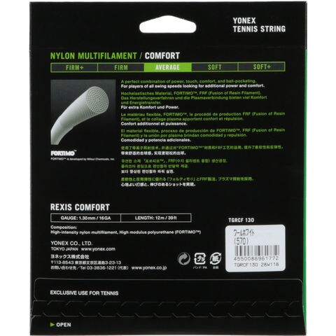 ヨネックス YONEX レクシスコンフォート130 REXIS COMFORT 硬式 ガット ストリング 反発力 マルチ ナイロン マルチフィラメント 部活 試合 練習 大会 TGRCF130 クールホワイト