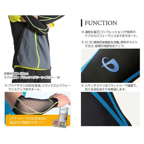 負担の大きい手足に適度なコンプレッション(着圧)を与え、筋肉の負担をケアしながらパフォーマンスアップをサポート.パワーテープのX30を一面に貼るのと同様にサポ-トします.
