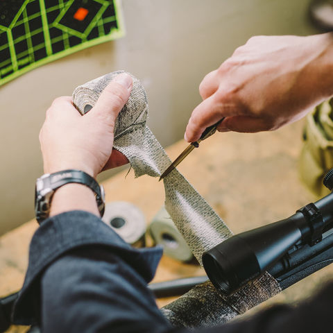 ギアを保護し、カモフラージュするテープ.あらゆるギアに巻きつけることで落とした時などの衝撃を和らげて破損を防ぎます.