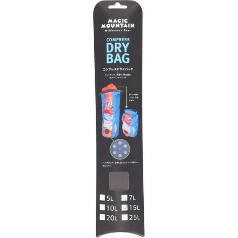 マジックマウンテン MAGIC MOUNTAIN コンプレスドライバッグ15L 丸底型 防水バッグ 防水ケース 圧縮袋 圧縮バッグ コンプレッション 水遊び 海 川 ビーチ プール キャンプ フィッシング 登山 MMCPDB15L グレー