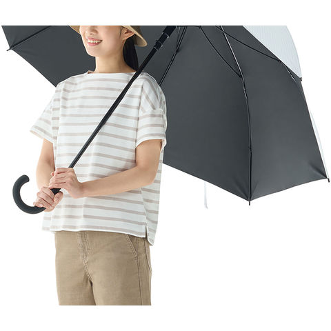 撥水生地を使用しているため、突然の雨にも対応.晴雨兼用で、1年中お使いいただけます.開いた時の直径は約130cm、骨長約150cm.大型サイズで日射しや雨からしっかり守ってくれます.シンプルなデザインなので、ユニセックスでお使いいただけます.