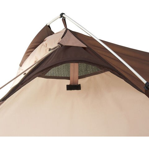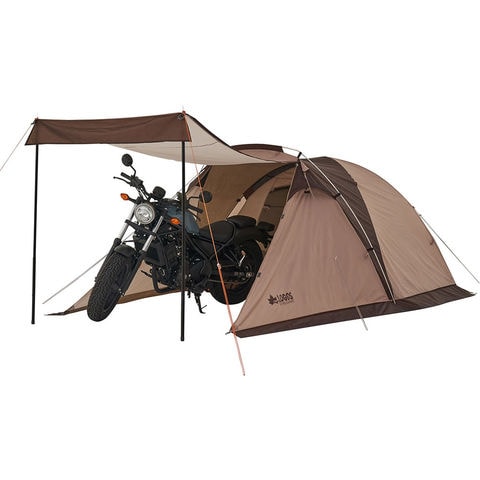 ツーリングに最適!大型前室付きのコンパクトな2人用テント.テント前面を大きく張り出すよう設計することで、バイクが置ける大型前室を実現.前室に駐車できるので、雨の日でも安心してすごせる.組立てもしやすく、収納時はコンパクトに.雨風や虫の侵入も防ぐマッドスカート付きで、フレームには丈夫で軽いアルミ素材を採用.テント上部ベンチレーションを設けています.空気が循環するので室内でも快適に過ごせます.インナーテントには、上下にベンチレーションを備えたC型ドアを採用しています.テントサイトにマッチするアースカラー