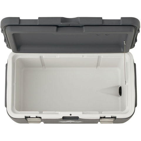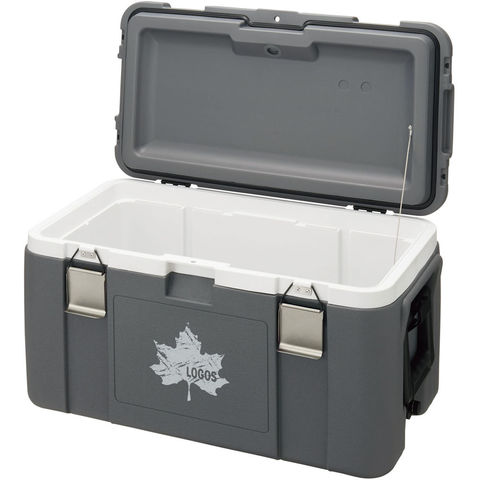 保冷性能6日!(※)氷点下パックと相性抜群の高性能クーラー.約50Lでチェア代わりに座ることも可能で、サイドには持ち運びに便利なハンドルを配置.内側にフタの開きすぎを防ぐ固定用ストッパー付き.※保冷性能について、クーラー容量の約26のバラ氷と約10の氷点下パック‐16℃を入れ、約25℃の室温において氷が残っている日数.試験中の蓋開閉は行いません.