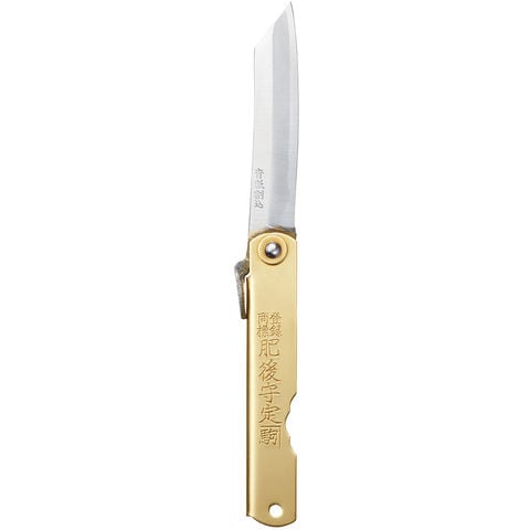 [LOGOS×肥後守 ナイフ]コラボアイテムで、ポケットに冒険を.明治時代中期に考案された、刃を折りたたんで鞘に収められる構造のナイフ=肥後守(ひごのかみ).かつては現在のカッターナイフの役割を担い、鉛筆削りやちょっとした工作をはじめ日常生活の中で幅広く愛用されるとても身近な刃物でした.野山を駆ける少年たちは常にこのナイフを携え、よき冒険の相棒として彼らの成長を見守り続けた存在でもありました.道具好きのアウトドアユーザーにとって、特別な一品となり、アウトドア調理や、ブッシュクラフトなど、さまざまなアウトドアシーンで活躍すること間違いなしです.