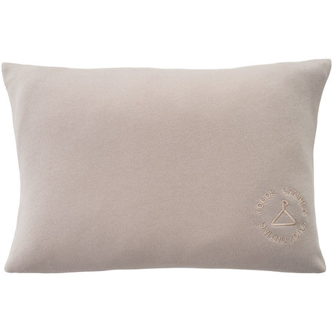セルフインフレートまくらに対応する枕カバー.別売りの[セルフインフレートまくら]に対応する枕カバー.枕ホルダー付きのシュラフの枕にも使えます.ご自宅の洗濯機で丸洗いができるうえ、生地には抗菌防臭加工を施しており清潔にお使いいただけます.カラーは、優しい色味で和やかな印象のベージュ、鮮やかな色味で明るい印象を与えるグリーン、落ち着いた色味でスタイリッシュな印象のグレーの 3 色展開です. 3 色それぞれにロゴスオリジナルの刺しゅうを、生地と同系統のカラーで施しており、シンプルながらもワンポイントのアクセントに.ジッパーやボタンはついていない横入れ封筒式なので着脱簡単.また、顔に金属部分があたったり、ジッパーで布を噛んでしまっ