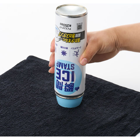 特徴:【使い方】 1 )タオルやハンカチ等を水で濡らします. 2 )本体を逆さまにし、スタンプを直接当て 1 秒 ?3 秒間プッシュします. 3 )冷やしたい箇所にアイシング、クールダウンしてください.