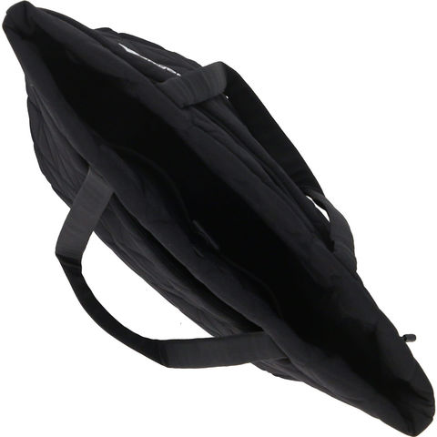電子機器やその周辺アクセサリーの収納に便利な、クッション性のあるトートバッグです.サイズ感は、ノート型PC13インチが簡易的に収まる15L容量.フロントにはファスナー付きポケット、背面にはオープンポケットを配置.本体内部にはタブレットを収納できるスリーブポケットと、本体上部にはスマートフォンも収納できるポケットがあり、デイリーユースでもビジネスシーンでも使いやすい収納性を備えています.手持ちにも肩掛けにもちょうどいい長さのストラップは、荷物の量やスタイルに合わせて使用できます.