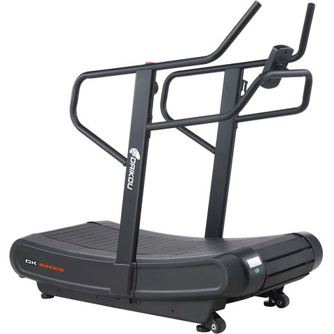 自走式トレッドミル特有の湾曲したの走行面を持っており、足が接地した瞬間に走行ベルトが重力の力を借りて自然に回転する構造に.スピードと負荷を自分でコントロールしながらのワークアウトが可能.高負荷トレーニングマシンでありながら、自走式トレッドミルは初心者の方でも転倒する危険性が少ないマシン.電動式トレッドミルと違い、走行する際にベルトを蹴り上げる動きが必要になる為、実際に屋外での運動時と同じような走行感覚で、より高い運動効果を期待できます.1台で多くのトレーニングメニューに対応できるので、このマシンを使いこなせば、アスリートのパフォーマンスアップから一般の方の体力強化まで、幅広い運動ができるでしょう.